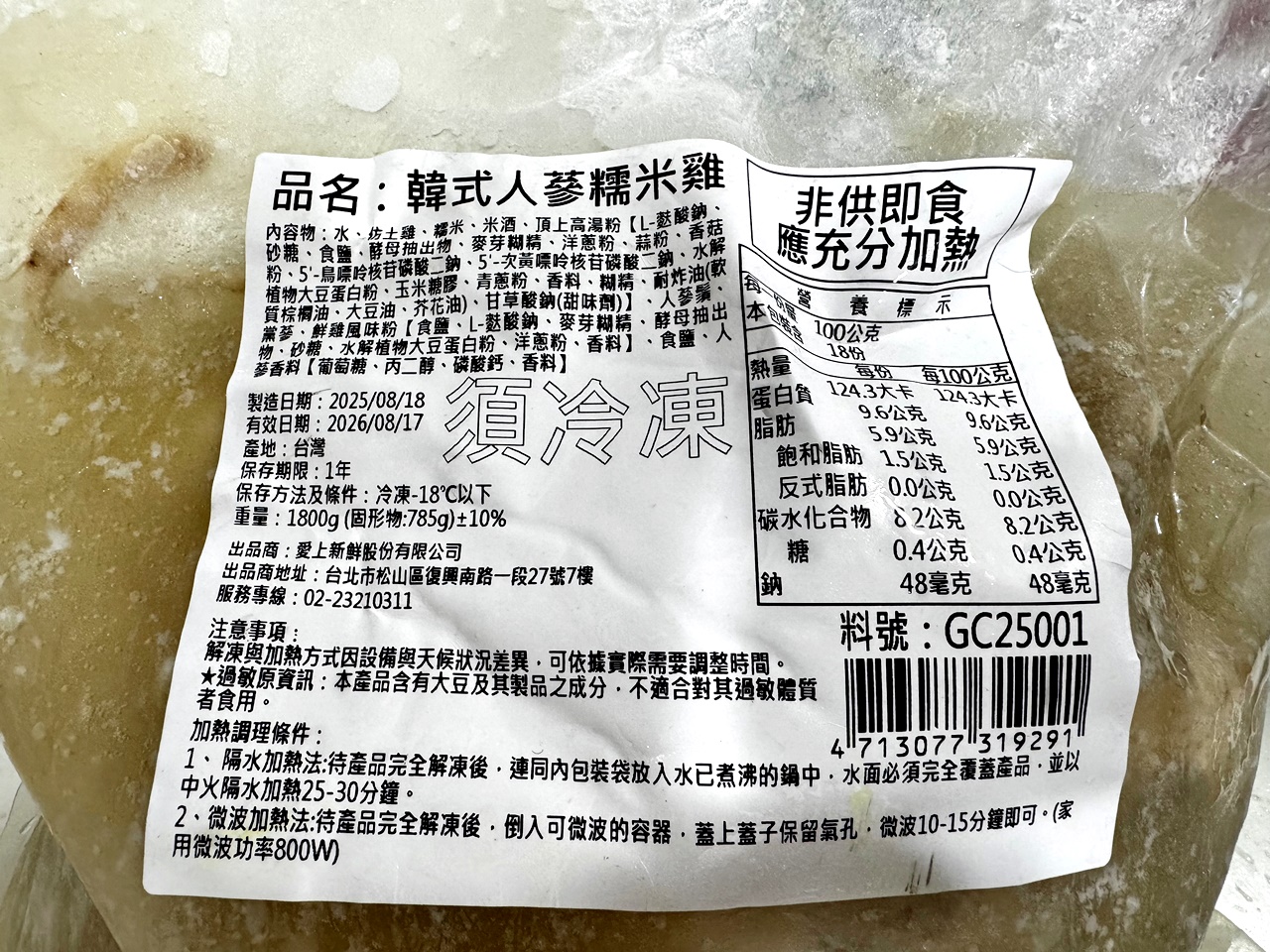 韓式人蔘糯米雞 開箱介紹