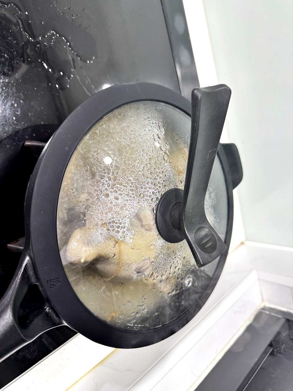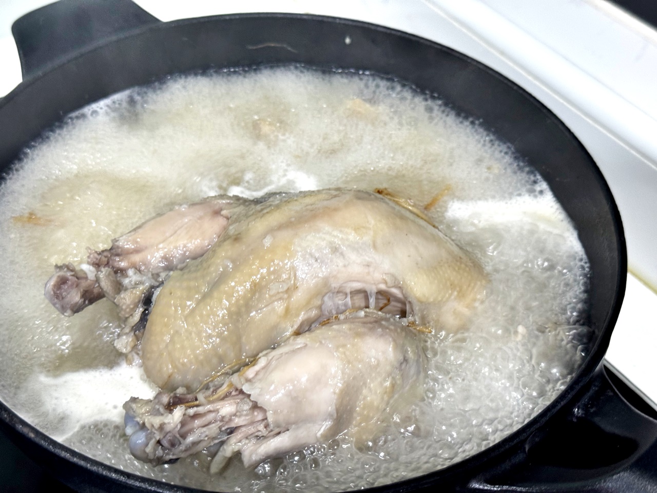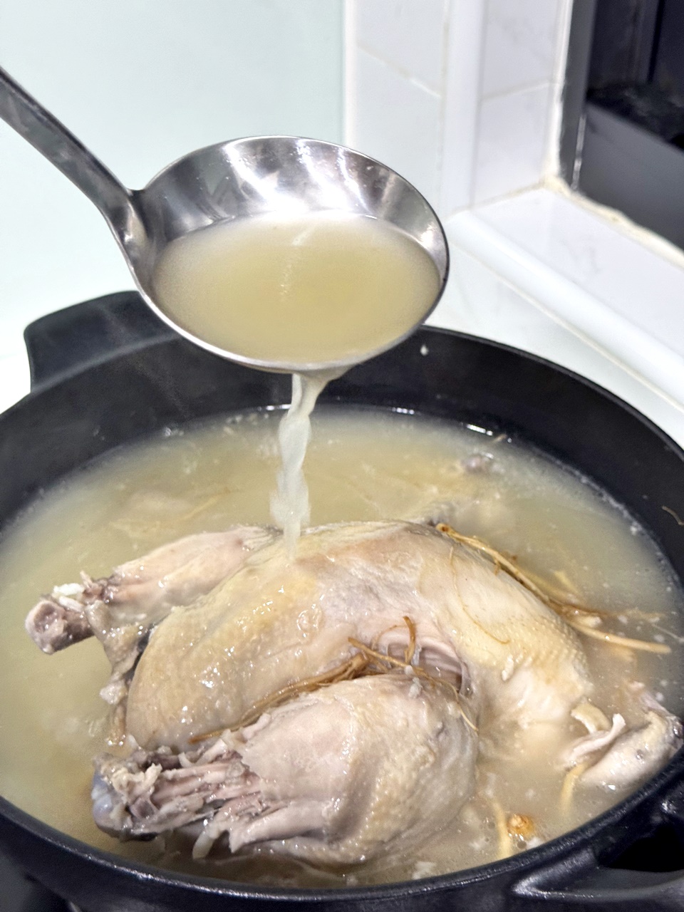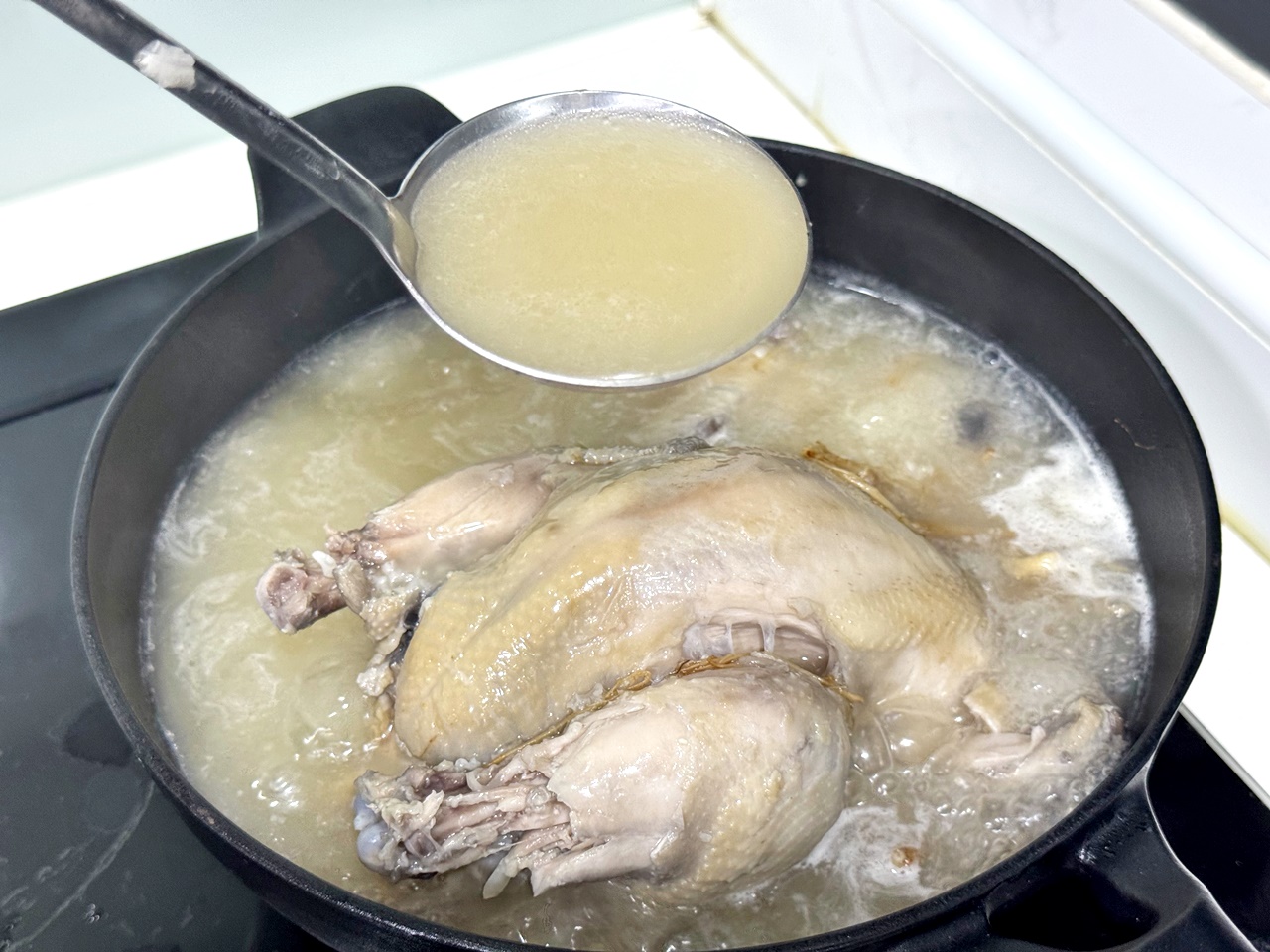 但因為我很習慣直接把料倒出來直接加熱,所以採用瓦斯爐放入鍋子加熱,但試驗了一下雞皮好像比較容易煮破(?),如果要美美的整隻雞,也許可以建議官方的方式喔!