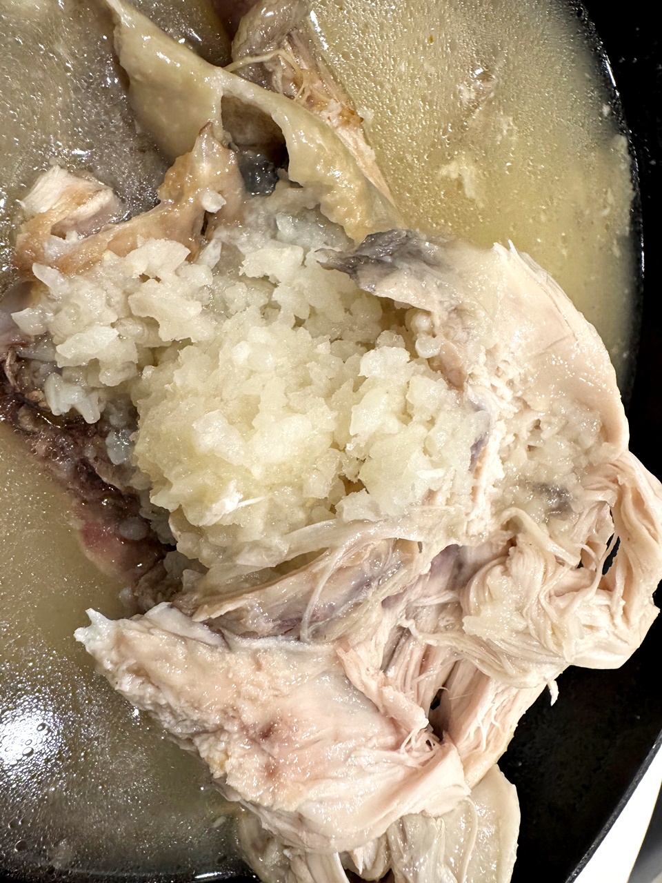 糯米被我挖出來了~裡面的糯米份量不算少,吸滿湯汁後很有飽足感,可以先喝湯、再把糯米拌著吃,口感上綿綿軟軟的,超級滿足,如果喜歡更有韓味一點,可以自行加點蔥花或黑胡椒,也很搭(後來吃完才覺得可以這樣搭XD)